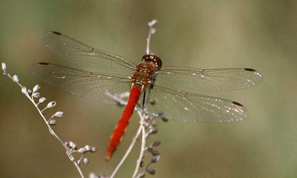 3、蜻蜓翅发达,前后翅等长而狭,膜质,网状翅脉极为清晰,飞行能力很强,每秒钟可达10米,既可突然回转,又可直入云霄,有时还能后退飞行。