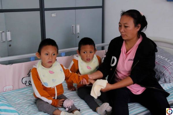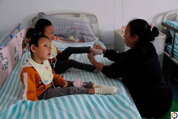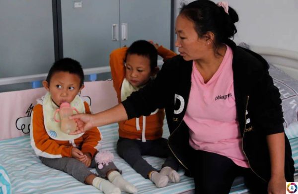 “再坚持坚持就好了,我只能不停鼓励自己坚持下去。只要两个女儿每天能有一点进步,我就觉得付出多少都值得。”好在经过一段时间的治疗,小兰和小香都有了很大的好转,现在已经能听懂一些简单的指令了,也能试着走几步路了。可此时尽管医院有补助,家里也已经一分钱都拿不出了。图为妈妈在照顾孩子。