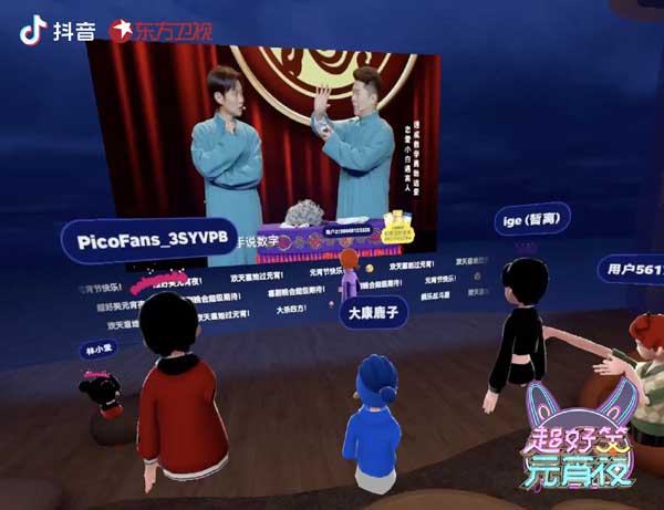 除了在东方卫视播出以外,本次《超好笑元宵夜》还联合抖音APP,在东方卫视抖音直播间、东方卫视超好笑元宵夜抖音直播间,以及烧饼、孟鹤堂、张海宇、百克力的抖音直播间共同播出,实现了大小屏的共创共融。同时,晚会也在PICO端同步呈现,用户能在虚拟场景中体验超清大屏,实现自由切换多个视角观看;用户虚拟形象,多人语音实时讨论;3D表情、弹幕讨论等多种交互体验。