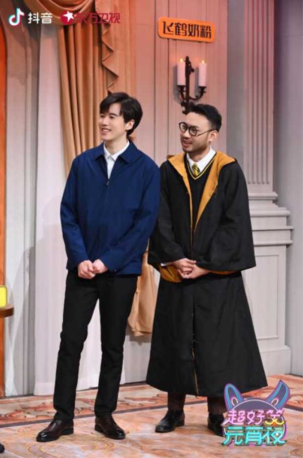 在《一年一度喜剧大赛》中,张哲华和鑫仔将风靡网络的霸总文学带上舞台,其系列作品《少爷和我》、《警察和我》、《德古拉和我》一度刷屏社交网络,其中“刘波刘海留疤”、“我龙傲天誓死守护刘波儿”等金句更是在观众的心中留下了深刻的印象。此次在元宵夜的晚会上,“刘波儿宇宙”的故事又来到了“魔法世界”,少爷刘波变身魔法爱好者“特波”,管家龙傲天则化身“大魔法师”,携手抵御“黑魔法”。在现实与魔法世界的对话中,两人又将带来怎样的精彩故事?“特波”能否学会“大魔法师”的魔性绕口令咒语?