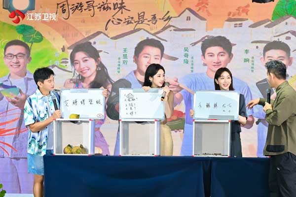 发布会现场,“舌尖团”贡献一连串名场面。舌尖团分工明确,吴奇隆是团队中的老大哥,李响自然是串联起舌尖团与各地“乡”味的主持人,姜妍表示自己作为团队中的厨艺担当,她在三站录制旅程中更是解锁了诸多美食新做法,在甘肃张掖特别烹制了琉璃雪花黑番茄、香煎羊排、蟹酿橙等菜品。提到此次在淮安洪泽的录制,吴奇隆爆料王昱珩的“捉鹅”趣事,并现场送给水哥“鹅见愁”的昵称。在此前的路透中,吴奇隆、宣璐在浙江安吉的竹林花式捉鸡,更是火速登上微博、抖音等多个平台热搜榜,节目尚未播出便引发网友关注。发布会现场,吴奇隆讲述捉鸡趣事,他表示自己是第一次尝试在竹林捉走地鸡,虽然过程很耗费体力,但过程新鲜有趣。来自江苏南京的演员宣璐,向在场嘉宾卖力地安利起了金陵美食。