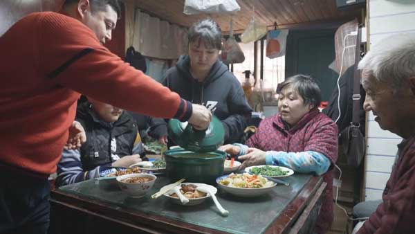王老先生一家是上海土著,居住在高桥镇单位分配的仅有24平方米、层高近7米的偏房中。三十年间,随着一双儿女的出生、儿子成家生子,原本的大通间已不适宜六口人居住。王爸爸秉着能省则省的原则,由饭店大厨转行自学为电工、木工、泥工,自己装隔层、贴地砖,靠着一人一双手内搭出三层错层。在“民间改造家”王老先生的极致利用下,六口人都有了自己量身定制的小天地。错层“小别墅”虽狭小老旧、复杂难行,但一砖一瓦、一楼一梯,皆是王老先生用心血为家人浇灌出的有爱小巢。