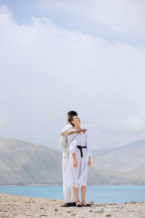 在王诗晴纪焕博的海报中,二人背靠背,身体被一根麻绳绑在一起,眼睛也被绳子遮挡,王诗晴说这代表着“看不到清晰的未来”。“我们已经思想南辕北辙,心好像都不在一起,但是又分不开,紧紧地被捆住”,王诗晴说。