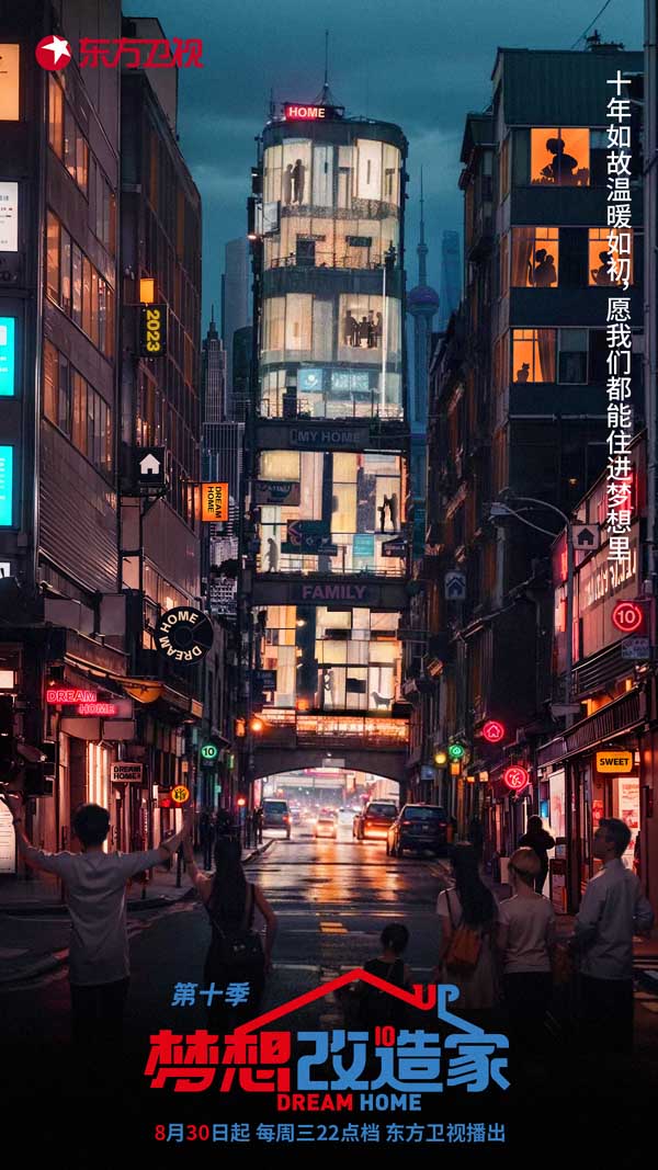 《梦想改造家》第十季仍以“家”为核心元素,所释出的主视觉海报保持以往温馨明亮的风格调性:都市中的万家灯火摇曳,透过窗棱,映照出家家户户幸福温暖的家庭生活。同步释出的总宣片也以家庭生活为落脚点:加班时与亲人的通话、团圆时的母女相拥、毕业时的离家远行……这些点滴固然琐碎,却能触及人们内心最柔软的角落。