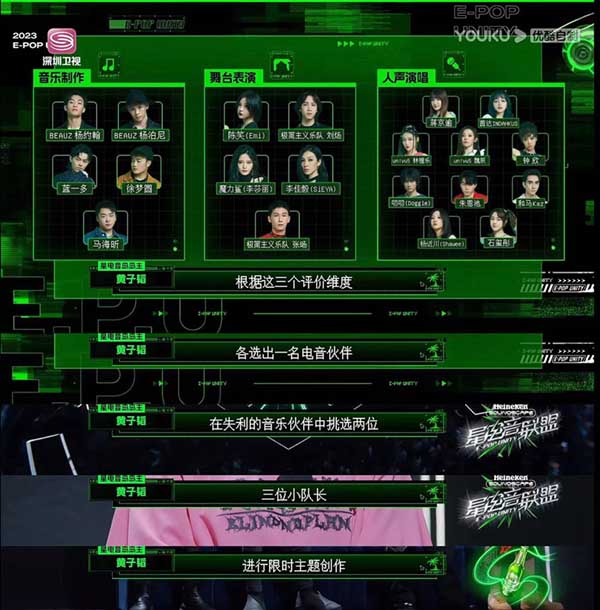 派对联合主理人凤凰传奇用一首《望星辰》开场,迅速点燃了现场气氛,他们极具辨识度的嗓音加上铿锵有力的音乐节奏,让观众置身于一场精彩纷呈的音乐视听盛宴。电音伙伴竞演间隙,电音岛岛主黄子韬“电”力全开,献上《中国CEO》+《Young King Young Boss》歌曲串烧,在燥燃节拍下,黄子韬清透扎实的声线搭上掷地有声的rap输出,尽展韬式魅力。之后的电音岛舞台上,擅长在音乐中融合中国古典主义美学元素的凤凰传奇和灵感爆棚敢说敢做的黄子韬将携电音伙伴们掀起怎样的电音风暴?令人期待满满。