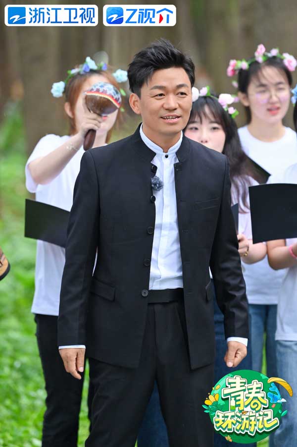 乔杉重现自己第一个作品的经典扮相,穿上黑西装白衬衫的他自我调侃好像是“地产中介”!