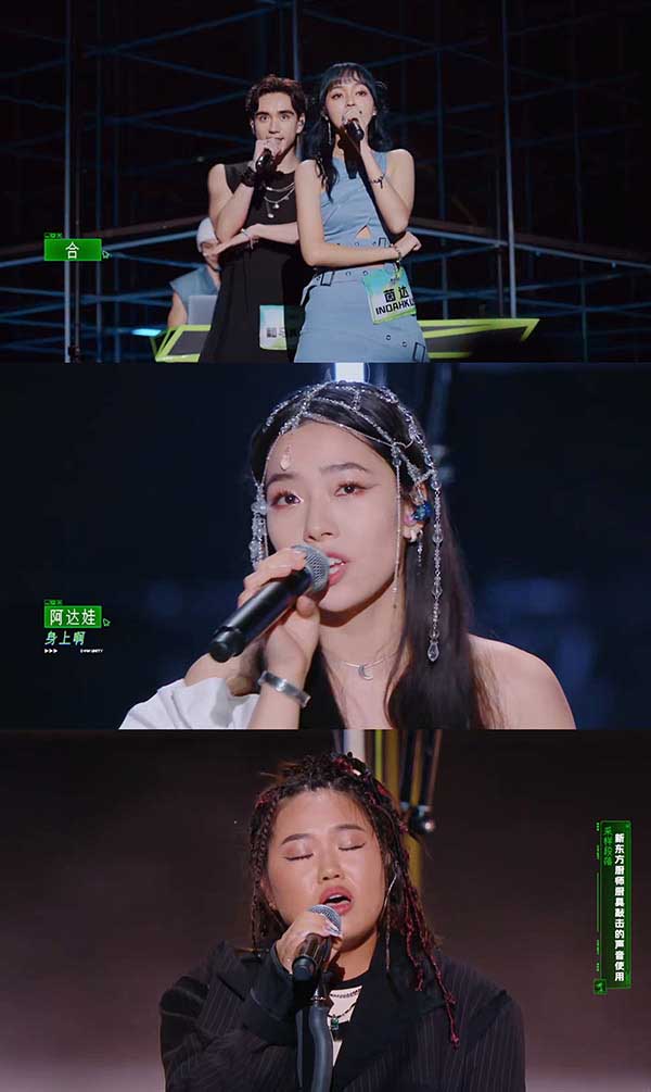 随着毕业派对进入后半场,观众们更加投入且沉浸于现场的火热气氛中,对于后面几组电音伙伴的期待值更是直接拉满。人工智能驯化小队宝藏兄弟、和马、茵达率先炸场带来夏日舞曲《One In a Million 梦行者》,迷幻深邃的trance结合人声饱满的互动,被电音伙伴高赞为“零瑕疵”舞台,最终获得了全场最高电力值。阿达娃小队改编伍佰的《白鸽》,悠长梦幻的和声刚柔并济,很好地调动了现场气氛。刘嘉妮凭借其独具个人色彩的醇厚嗓音狠狠抓住观众,翟正楠动感十足rap适时调节了节奏动态,搭配杨博文的b-box默契完成了舞台《迷途羔羊》。楚晴、刘家良和魏虎虎带来了幻魅风格的《从头》,光影交错中氛围感十足。杰克Wilven、崔三金与深水29的《经济舱》满满少年感,清透自由的嗓音让观众仿佛真的飞上云巅,奔向未知之旅。