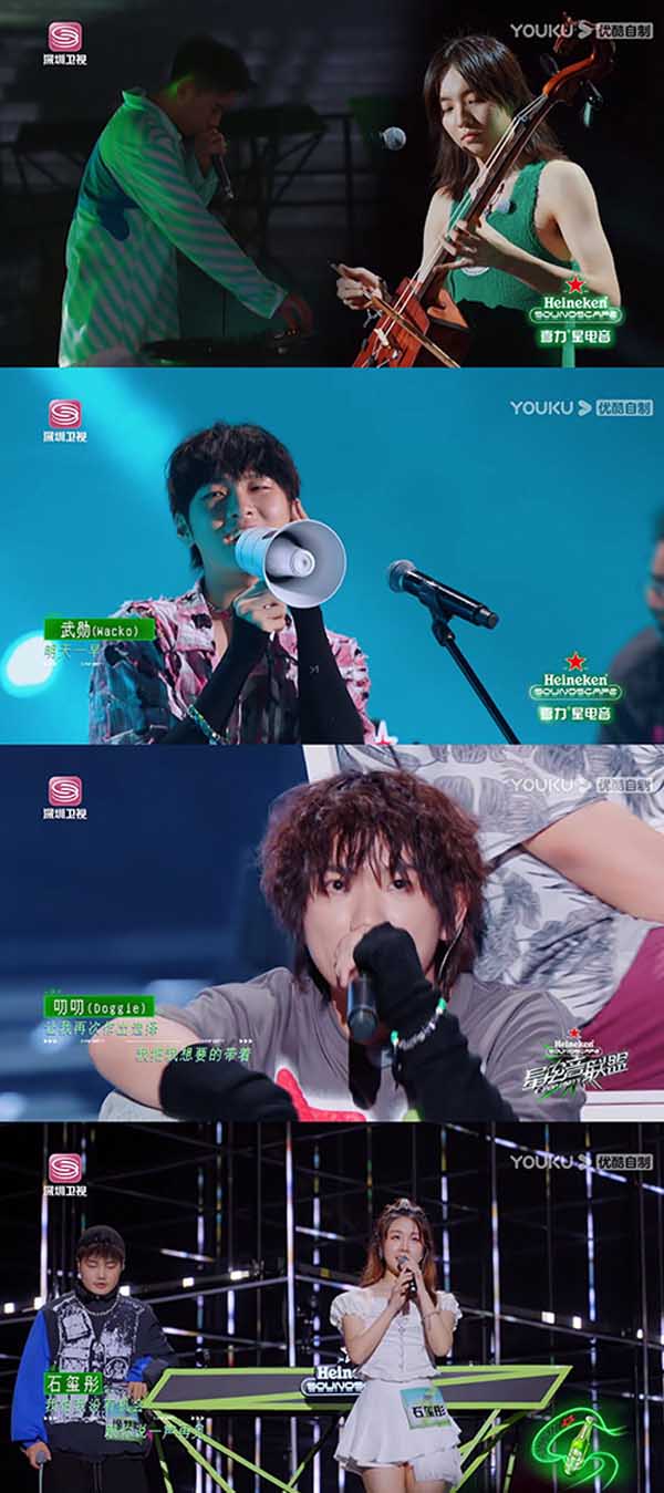 电音伙伴们巧思无限的舞台更是让全场欢呼迭起。八位电音队长分成两组,率先带来两首队长大秀《告别前跳舞》《再不疯狂我们就老了》,在火热的电音燃曲与沁凉透爽的海边夏雨交织下,仅仅是暖场舞台就已将现场观众的体验值疯狂拉满。刘一凡队伍的《NEW BOY》创意爆棚,除了设计不插电环节的人声b-box,还启用了极具穿透力的电音喇叭,并在歌曲结尾处采样了毕业生们的真实祝福语,使得舞台更具完整性和故事感。哈拉木吉队伍则在舞台《向往》中巧妙结合民族乐以及雷鬼音乐,醇厚悠扬的马头琴与呼麦让人穿越至千里之外的无人之境。00后制作人马海昕和队员叨叨Doggie、蒋京逾释放高能音浪,献上一曲青春洋溢的《再见吧少年》。徐梦圆队伍大胆改编《再见》,使得毕业金曲焕发出跳跃动感的新活力,歌手石玺彤更是惊喜化身DJ,精准拿捏了全场的律动节奏。