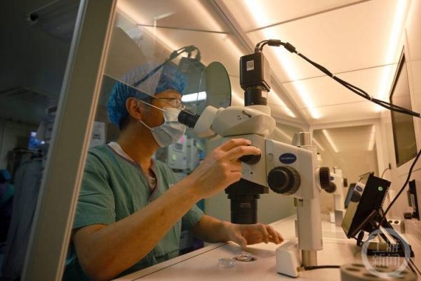 医生会将卵泡液(里面含有卵子)传递到胚胎实验室里。实验人员在显微镜下,将卵子从卵泡液中一一搜集起来。