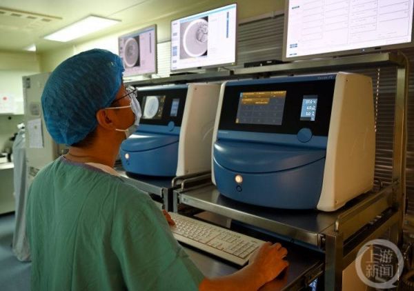 精卵结合,完成受精后,那些正常受精的受精卵就会被搬进“新家”——“时差培养箱”进行培养。在重庆市妇幼保健院,这些培养箱和显示屏占据了一整面墙,蓝色的培养箱上实时显示受精卵发育的各种信息。