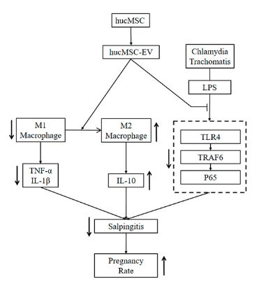 间充质干细胞(MSCs)是源自中胚层的成体干细胞,具有自我更新能力和多向分化潜力。以往的研究表明MSCs移植可以显著减少CT感染引起的输卵管炎的炎症。体外研究证实,MSCs可以通过旁分泌途径促进巨噬细胞从M1(促炎)转化为M2(抗炎)表型,然而,MSCs的临床应用仍存在争议。