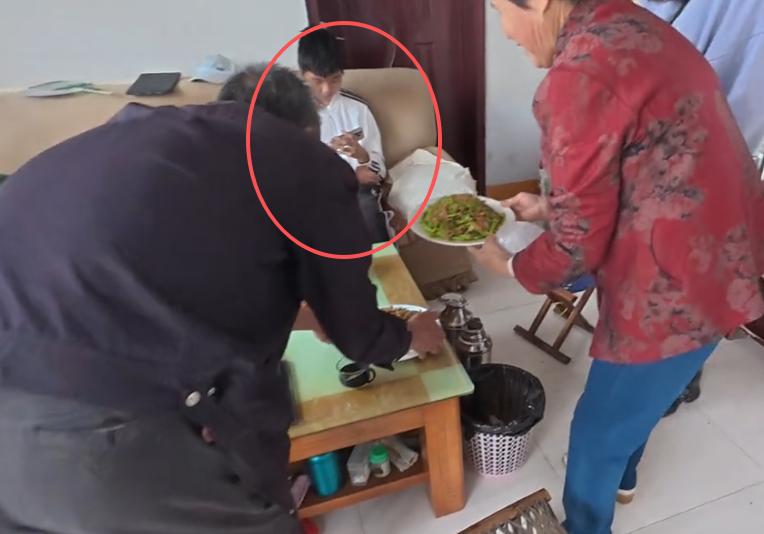 而赵先生自从见了叔叔开始,从头到尾没说过一句正经问候的话,全程要么对着镜头说话,要么跟老婆孩子聊天,跟叔叔的互动更像“走流程”。