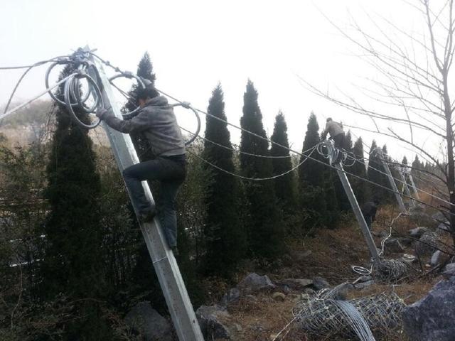 2.10.5 钢绳网的缝合:从系统的一端开始,先将缝合绳中点固定在每一张网的上缘中点。从 中点开始用一半缝合绳向左逐步将网与两根支撑绳缠绕在一起,直到用绳卡将两根支撑绳联结在一起的地方之后,用缝合绳将网与不带减压环的一根支撑绳缠绕在一起,当到达柱顶挂座时,将缝合绳从挂座的前侧穿地,并继续转向右缠绕不带减压环的一根支撑绳,直到联结两根支撑绳的绳卡之后。从这里开始用缝合绳将网与两根支撑绳缠绕在一起,直到跨越钢绳网下缘中点1m为止,最后用绳卡将缝合绳与钢绳网固定在一起,绳卡应放在离缝合末端约0.5m的地方;