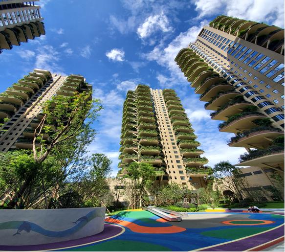 该项目由8栋各30层的绿色住宅楼组成,总占地面积为2.12万平方米,建筑面积15万平方米,总绿化面积为3.39万平方米,绿化率高达160%,其中,立体绿化面积为2.72万平方米,地面绿化面积0.67万平方米。
