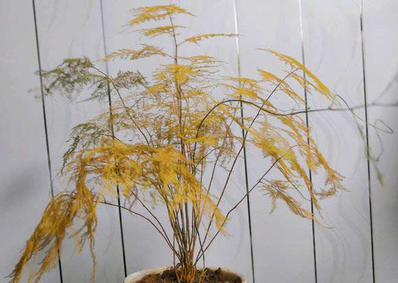 因为文竹的叶子比较小,而且含水量也低,本身它也会新陈代谢自然老化,当养护不当出现文竹叶子变黄的时候,无论我们怎么努力,它的叶子都不会恢复的。