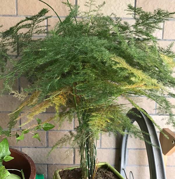 上面这张图的文竹,最理想的处理方式,就是把枯黄的枝条剪掉。