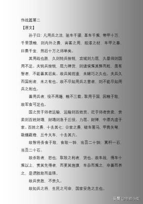 国家之所以因为用兵而导致贫困,就是由于远道运输。远道运输,就会使百姓陷入贫困的处境。在靠近大军集结的地方,物价必定会上涨,物价上涨就会造成6000国家财力枯竭,国家财力枯竭便会加紧向百姓征收赋役篇章。这样,人力耗尽,财力枯竭,就会使国内十室九空。百姓的收入将要耗去十分之七,国家的财产,也会因为诸如车辆的损坏,马匹的疲惫,盔甲、箭弩、戟盾、大橹的补充,以及大牛大车的征调,而耗去国家财力的十分之六。
