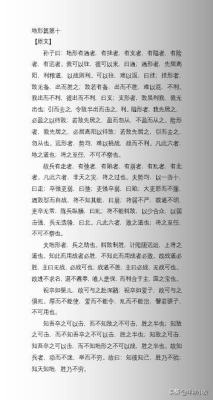 敌人逼近我军而能保持安静的,是倚仗他占领着险要的地形;敌人离我军很远而前来挑战的,是想引诱我军轻进;敌人在平坦地带驻扎,是因为这样做对他们有利;许多树木摇曳摆动,这是敌人要来了;草丛中有许多遮障物,这是敌人故布疑阵。鸟雀惊飞,说明下面有伏兵;野兽骇奔,这是敌军大举突袭。尘土高扬而又细长,这是敌人的兵车驰来;尘土飞起很少而面积宽广,这是敌人的步兵开来;尘土四散有致,这是敌人在砍柴伐木;尘土稀薄而又时起时落,这是敌人正在结寨扎营。敌人的使者措辞谦卑却又在加紧战备的,这是想要进攻;敌人的使者措辞强硬而军队又作出前进姿态的,这是在准备撤退;敌人的战车先出动,部署在侧翼的,这是在布列阵势;敌人并未受挫而主动前来讲和的,必定是藏有阴谋;敌人急速奔跑,并摆开兵车列阵的,是期望能同我军决战;敌人半进半退的,是企图引诱我军。敌兵倚着兵器站立,这是缺粮饥饿的表现;敌兵打水的人自己先喝的,这是干渴缺水的表现;敌人看见有利而不进兵争夺的,这是疲劳的表现。敌军营寨上方飞鸟群集,表明这是座空营;敌人夜间惊慌叫喊,这是他们恐惧的表现;敌营惊扰纷乱,这是敌将没有威严的表现;敌阵旗帜挥动不整齐,这是敌人队伍已经混乱的表现;敌人军官易怒烦躁,表明敌军已经疲倦;敌人用粮食喂马,杀牲口吃肉,收拾起炊具,不再返回营寨,这是决定拼死突围的穷寇。敌将低声下气同部下讲话,这表明敌将已经失去人心;接连不断地犒赏士卒,这说明敌人已无计可施;一而再地处罚部下,这表明敌军处境困难;敌方将领起初对部下凶暴,后又害怕部下叛变的,这是最不精明的将领;敌人派遣使者前来送礼言好,这是敌人企图休兵息战;敌人气势汹汹而来同我对阵,可是久不交锋但又不撤退的,这就必须审慎地观察以摸清他的意图。