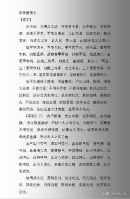 孙子说:大凡用兵的法则,将帅接受国作者君的命令,从征集民众、编成作者军队,一直到同敌人对阵,在这中间没有比争夺制胜条件更为困难的了,孙子兵法一共是多少篇。而争夺制胜条件最困难的地方,在于要把迂回的弯路变为直路,要把不利条件转化为有利条件。同时,要使敌人的近直之利变为远迂之患,并用小利引诱敌人,从而做到我军比敌人后出发而先抵达必争的战略要地,这才是掌握了以迂为直的方法。