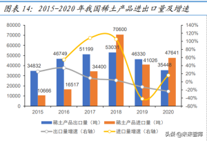 我国也是稀土出口大国,2020 年我国稀土产品出口量为 35,448 吨(包括稀土化合物及稀 土金属),同比下降 23.5%,化学离子半径大小比较,主要稀土出口国包括日本、美国、德国等,稀土出口量在 2015 至 2020 年间呈先增后减的氯趋势。从决定因素消费端来看,我国为全球第一大稀土消费国,2020 年我 国稀土表观消费量高达 15.2 万吨,占据全球稀土产量一半以上,为稀土资源消费量第一大国;