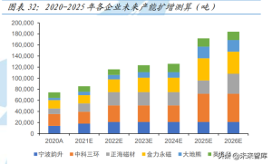 目前我国高性能钕铁硼永磁材料厂有大量扩产计划,侧面印证下游需求的高景气度。由 于钕铁硼永磁材料为非标准化产品,涉及新材料、新工艺和新产品的研发,钕铁硼生产商往 往需根据下游客户对产品的需求而制定相关的生产计划。例如,新能源车企往往会提供相关 电机的技术参数和产品规格,钕铁硼生产商需根据客户提供的参数进行定制化设计和批量生 产。截止 2021 年年底,我国主要高性能钕铁硼生产商包括宁波韵升(年产能 1.4 万吨)、中 科三环(年产能 2.15 万吨)、正海磁材(21 年年底投产后已达 1.5 万吨产能)、金力永磁 (21 年产能 1.5 万吨,22 年二季度预计可达 2.3 万吨产能)、大地熊(21 年年底已达 6,000 吨产能)和英洛华(年产能 1 万吨)。根据目前公开披露口径,以上企业均有相应的扩产计 划,预计六家企业总产能将由 2020 年的 7.45 万吨增至 2026 年的 18.4 万吨,CAGR 达 16.3%; 由于许多高性能钕铁硼产品为定制化或非标准化产品,企业扩产的决心也间接印证了下游终端行业的需求高景气度,离子半径大小比较口诀。