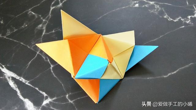 所有部分远的都完成折回后,一个简单好玩的折纸陀螺就制作好了!