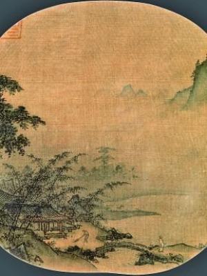 湖畔幽居字词图(中国画)夏圭(南宋字带)