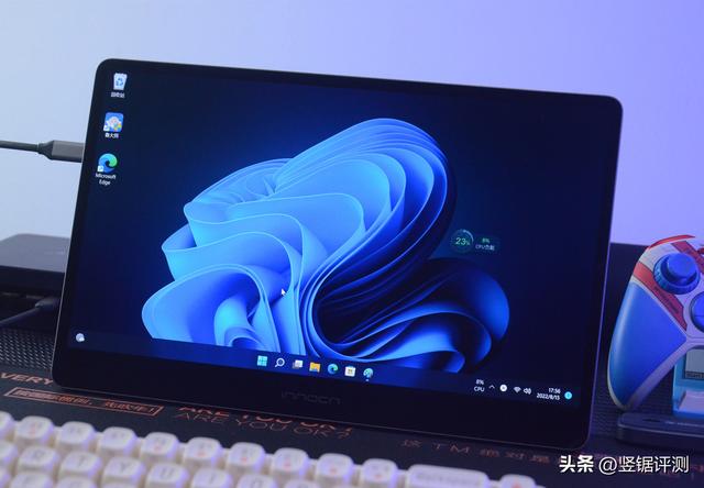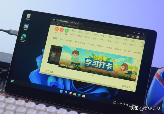 另外,我这台便携屏还设有扬声器,并且培训班输入接口平板是集成供电功能的,所以通过C口的方式连接到零刻EQ59 Pro的C口,就能直接由零刻EQ59 Pro供电从而不需要单独入门供电,桌面上只需主机的电源以及学习机一条带视频传输的USB-C to USB-C线就行了,这样组合用起来会很方便也很省事,并且桌面上也很简洁。
