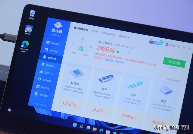 好了,到了最关键的设计,也就是性能方面了。零刻EQ59 Pro搭载了英特尔第11代N5105处理器,显卡为英特尔集显,硬盘则为M.2 SATA3 2280,儿童电脑管理,我用鲁大师进行了一下性能测试,可以看到成绩为298650分,对于这样一款迷你电脑主机而言,我个人认为学习机这个性能很不错了。