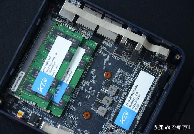 零刻EQ59 Pro内部实拍,内部结构还是挺整齐的,并且细节打字做工也不错。另外,零刻EQ59 Pro有两个内存插槽,16GB内存由2条8GB内存组成,这样形成了双通道,进一步提升了整机的体验。而除了16GB+512GB的版本外,还有一个8GB+512GB版本,这款要便宜140,如果家里有闲置的内存条,选8GB+512GB版本也可以。