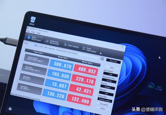 零刻EQ59 Pro的硬盘读/写速度测试,跟官方所说管理的500MB/s读取速度接近。