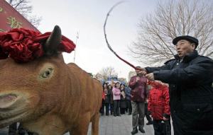 《礼记·月令》中讲到,季冬之月要“出土牛以送寒气”。东汉蔡邕在一只《月令章句》中这样解释:丑为牛,寒将极,故出其物为形像以示送达之,且以升阳也。