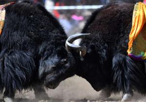 西藏自治区非物质文化遗产:者下乡斗牛节。最终胜出的牦牛被称为“牦牛至尊”