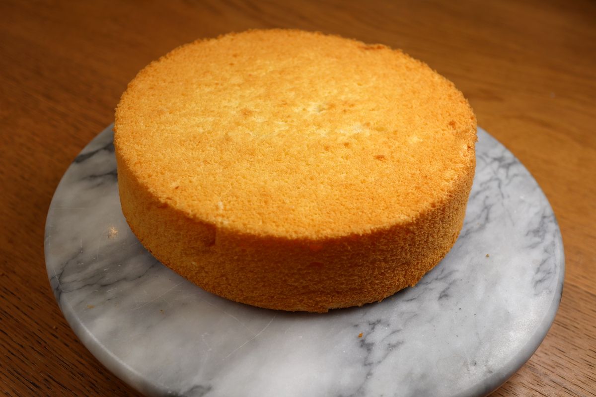 6.立即倒入蛋糕模子中,放入烤箱中层,用180度上下火烘烤40分钟,烤好后取出立即倒扣,晾凉后即可脱模;