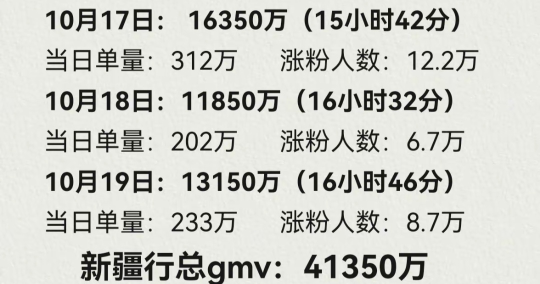 下面来看看网友总结的具体详情。17号1.63亿、18号1.18亿、19号1.31亿,一共三天总GMV达4.13亿。