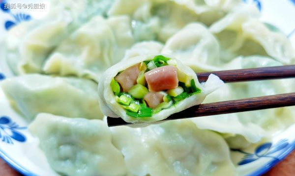 2.盆内加入300克面粉,用凉水,和成一个偏软的面团,密封醒10分钟。然后取出,揉至搓成长条,切成小剂子,擀成饺子皮,放入适量馅料包起来。