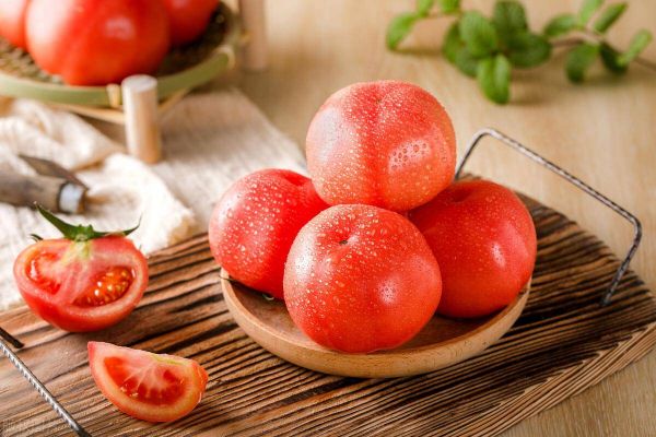2.西红柿先用开水泡一下,然后取出去掉皮切成小块。