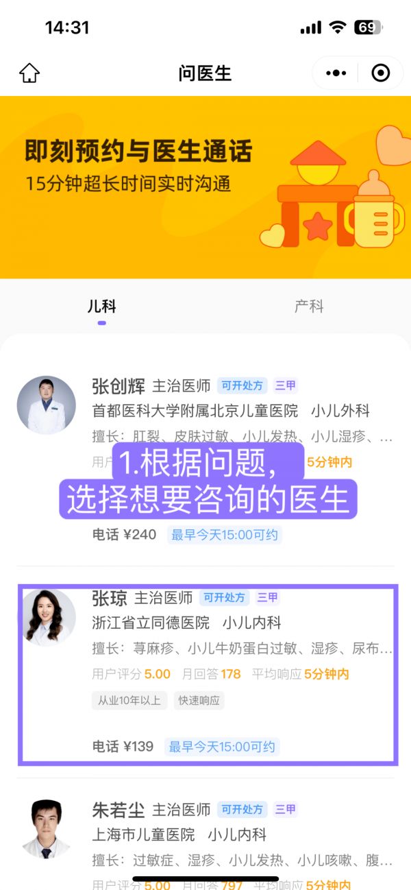 1. 根据病情,选择想要咨询的医生