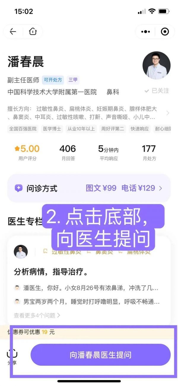 2. 点击底部向医生提问