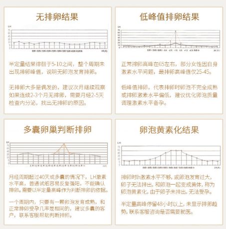 所以除了判断排卵时间,检测过程中半定量还可辅助判断无排卵,低峰值排卵、多囊、卵泡黄素化等异常排卵。