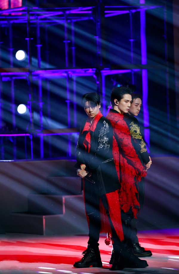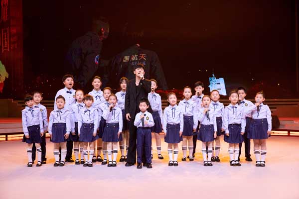 在官方发布的《我们都是追梦人》舞台剧照中,大湾区哥哥们穿着非常正式的黑色西服套装,站立于舞美设计为“港珠澳大桥”舞台之上,唱响这首非常有意义的歌曲。大湾区哥哥同11位湾区青年一起,紧握拳头高举右手,展现出昂扬和奋进的姿态。