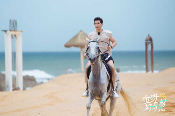 芒果TV自制健康运动社交真人秀《哎呀好身材》海浪季踏浪来袭,今日节目组释出一组沙滩剧照,在美丽梦幻的沙漏岛,李治廷、赵小棠身骑白马英姿飒爽,举手投足之间尽显意气风发;陈宥维、王子异、周九良在海边打太极悠然自乐,静心感受沙漏岛蓝天、海浪、微风带来的惬意。