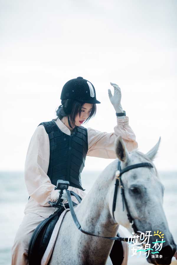 照片里,李治廷身着米白色背心、黑白沙滩裤骑在高头大马上自信张扬,手持缰绳目视前方妥妥的白马王子范儿,满屏的荷尔蒙气息扑面而来。在沙滩驰骋过后,李治廷轻柔地抚摸爱马,一人一马深情对望,尽显铁汉柔情。赵小棠一袭米色骑士装配上专业马术头盔、白色手套,俨然一个专业的骑手。随风飞舞的秀发拂过赵小棠坚毅的面庞,抬首间就是大片!