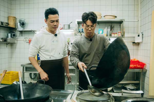 “无自信不营业”大厨现场教学,陈小春烹制“妈妈的味道” 无规矩不成方圆,在本期节目中,大湾仔们为了专心准备开业,一致决定“上交手机”。而在推举店长的时候,大家充分发挥了“有福同享,有难同当”的宗旨,采用抽签的方式确定轮班店长,而大排档唯一指定大厨谢天华再度“幸运”当选,面对贫瘠的菜品和复杂的营业流程,身兼数职的天华哥提议全员外出“学艺”,争取每个人学会一道粤式风味菜。 先定一个小目标,大湾仔兵分两路开始“拜师”学艺。“骑马”组陈小春和林晓峰,脑子比手学得快,“师傅领进门,修行靠他们”,陈小春牢记步骤,却卡在了第一步切鱼上,最后大费周章,终于做出了拥有“妈妈味道”的咸鱼头豆腐汤。林晓峰学做的椒盐皮皮虾,和谢天华的避风塘炒蟹都需要高温油炸,火候难以掌握,经过大厨的耐心指点,两道镬气满满的美味获得大家的一致好评,“好香哦,这就是港式的味道”。“实习”厨师终于出师,自信满满的他们,会做出让食客们满意的菜肴吗?