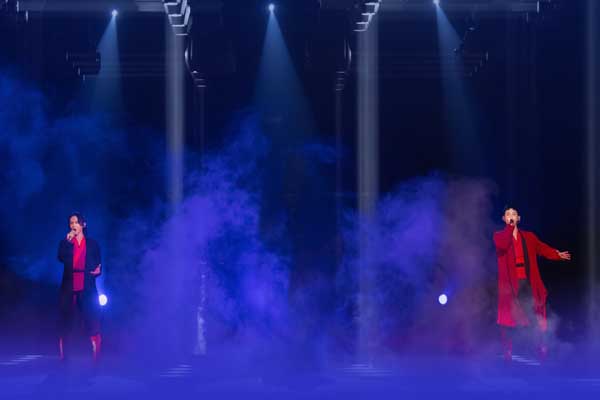 舞台剧照中,“隐藏队长”言承旭带领“日不落”组哥哥们全员绅士装亮相《被驯服的象》,登长桌上演“音乐剧”,五人默契唱跳传递“不被生活驯服”的想法,引人深思;《悟空》二人组红装登场,张淇扮悟空尽显不羁,挑战“京剧唱腔”洒脱献唱,白举纲高音气场强大;“温柔rap”小分队深情演绎《飞云之下》,林志炫纵情高歌,热狗成“天使”在高台诉说别样“思念”;“大湾区”哥哥与布瑞吉周延组成“七小福”,全员彩色复古穿搭挑战舞台剧版《往事只能回味》,“大湾区哥哥”粤语rap引爆全场,张智霖镜前投入跳曼波舞魅力十足。