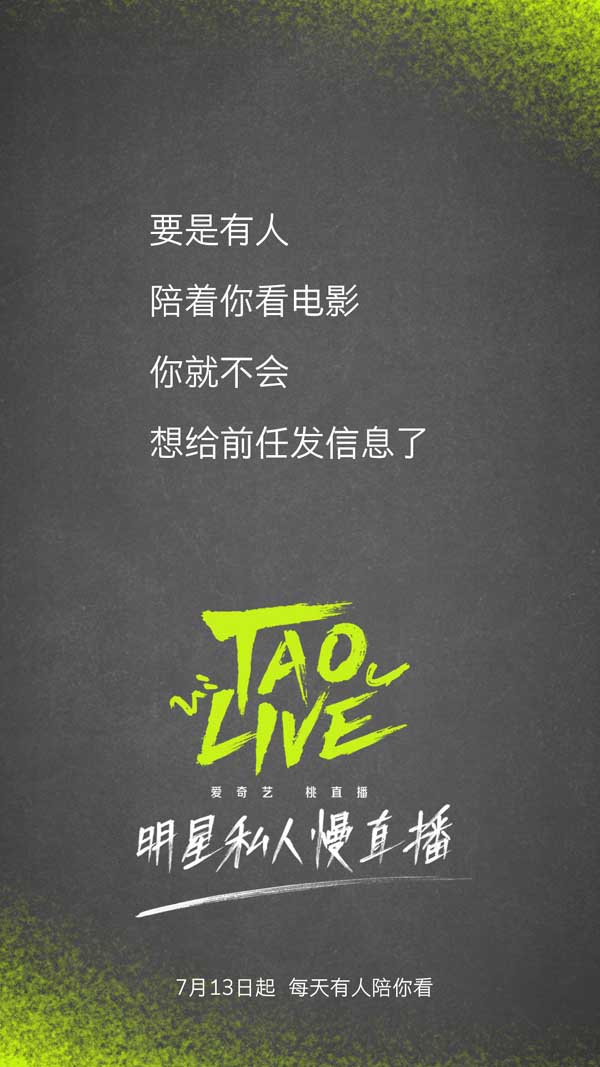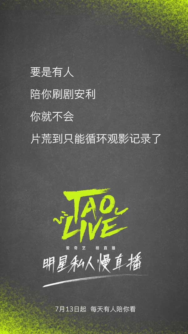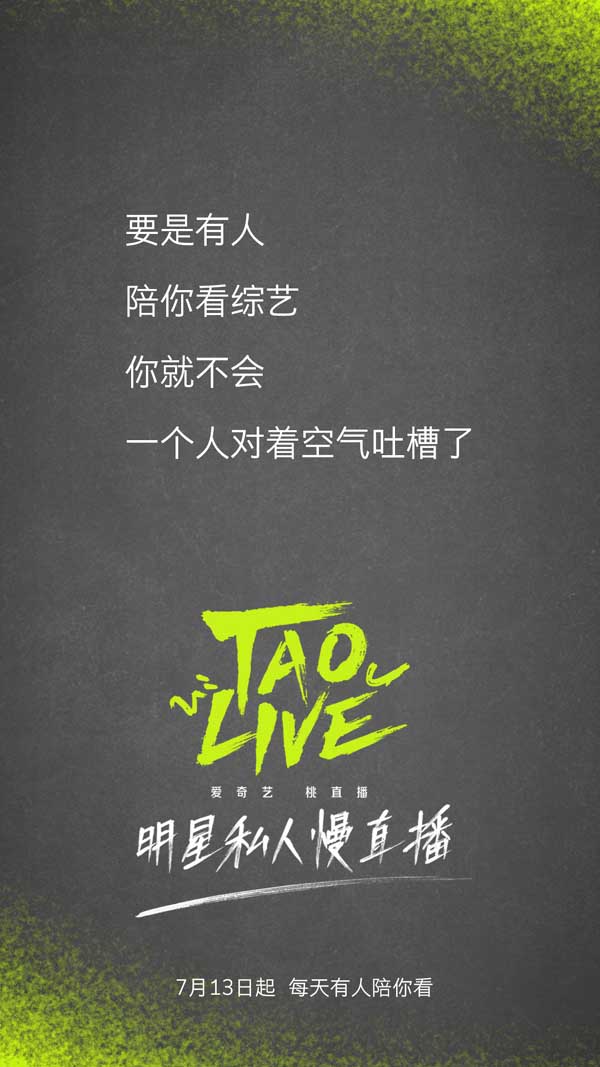 “TAO LIVE”作为高品质的明星直播,为观众提供了一处可以“解甲归田”的桃园,用慢下来的陪伴带给观众优质体验的同时,也给明星带来不同程度的个性化影响。它的出现有可能成为行业直播的新样态,为娱乐市场的更迭提供新思路。“TAO LIVE”将于7月13日起,在爱奇艺正式上线,一同回归慢节奏,静候尔来