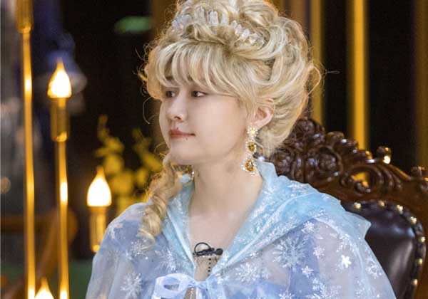 在本期节目中, drama女王金靖饰演演技精湛的明日之星金银花,一头浅棕卷发搭配蓝色冰雪长裙,造型酷似艾莎公主,引得网友们热议:“可以和隔壁勋白雪组姐妹CP吗?”第一轮集中推理时,随着吃货少女和追风少年的聊天记录曝光,全员前排就坐坐等吃瓜。其中一张关于吃货少女流落街头裹着棉被的照片引起了金靖兴趣,八卦少女金靖好奇发问:“看得清脸吗?”结果发现照片中的人竟是自己,吃瓜吃到自己身上,金靖吃瓜脸秒变震惊脸,手足无措强装淡定的模样可爱十足。