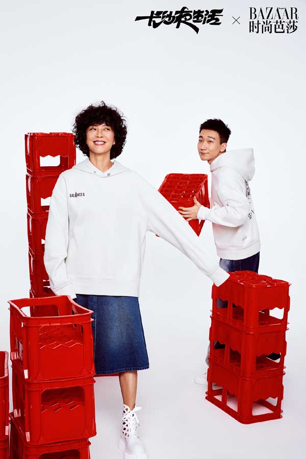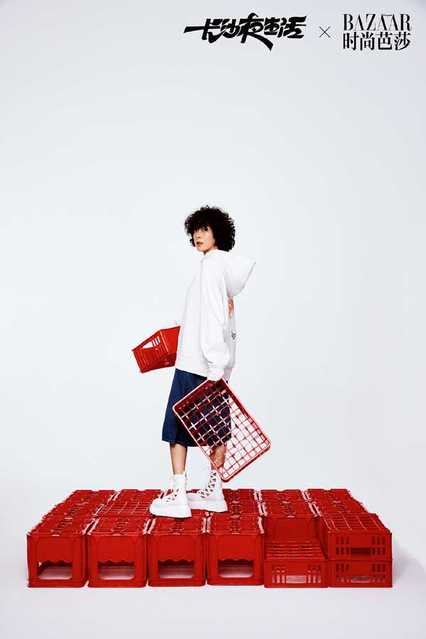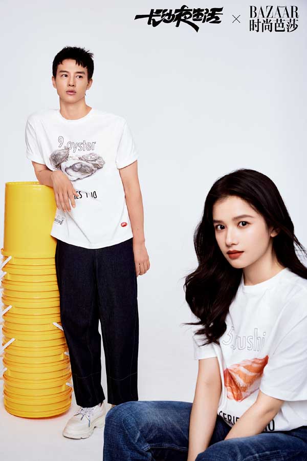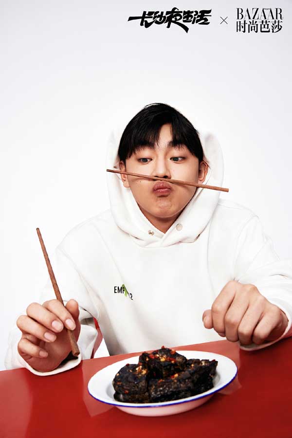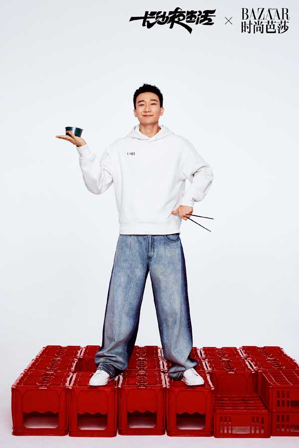 烟火入夜,知味长沙。在这套与时尚芭莎联动的大片和特辑中,随着长沙夜宵王者“口味虾”的辣香弥漫,尹昉、张婧仪、苏岩、吴昊宸、白宇帆、周思羽六位演员统一着T恤牛仔的简单装扮,一齐变身“好恰鬼”(长沙话:吃货)围聚餐桌旁,举起筷子、套上塑料手套,准备大快朵颐,尽享地道长沙美味。而长沙本地夜宵大排档中常见的塑料凳、塑料筐以红黄两色登场,更将长沙夜生活的年轻态、活力感张扬到极致。在这组大片与特辑舒服、极简又接地气的演绎下,不难看出长沙人夜生活的热闹精彩、活色生香,同时也不禁惹人猜测,“吃”是不是电影《长沙夜生活》中的重要线索呢?