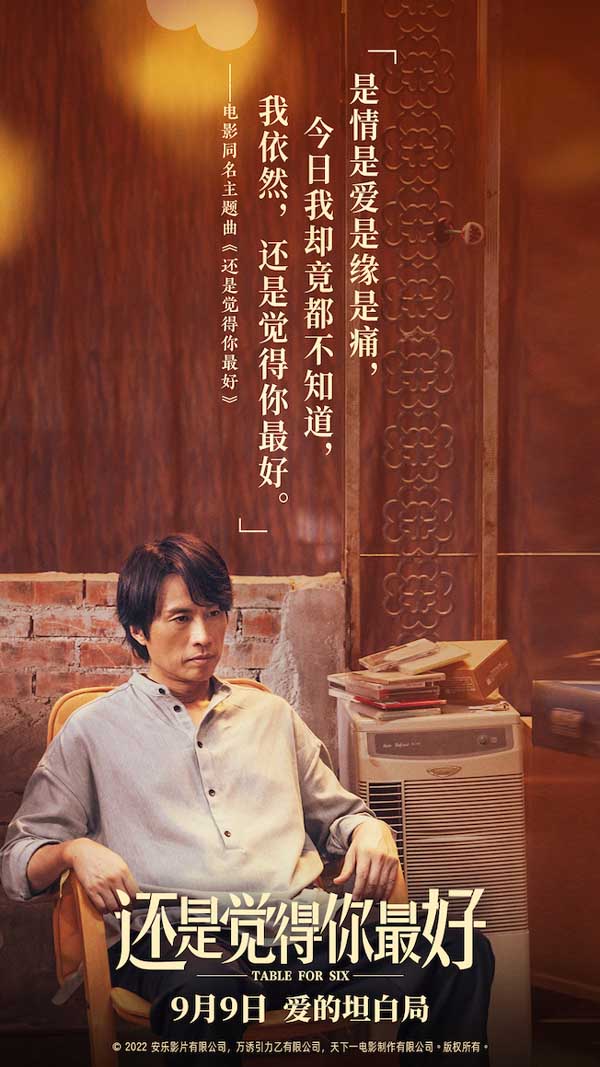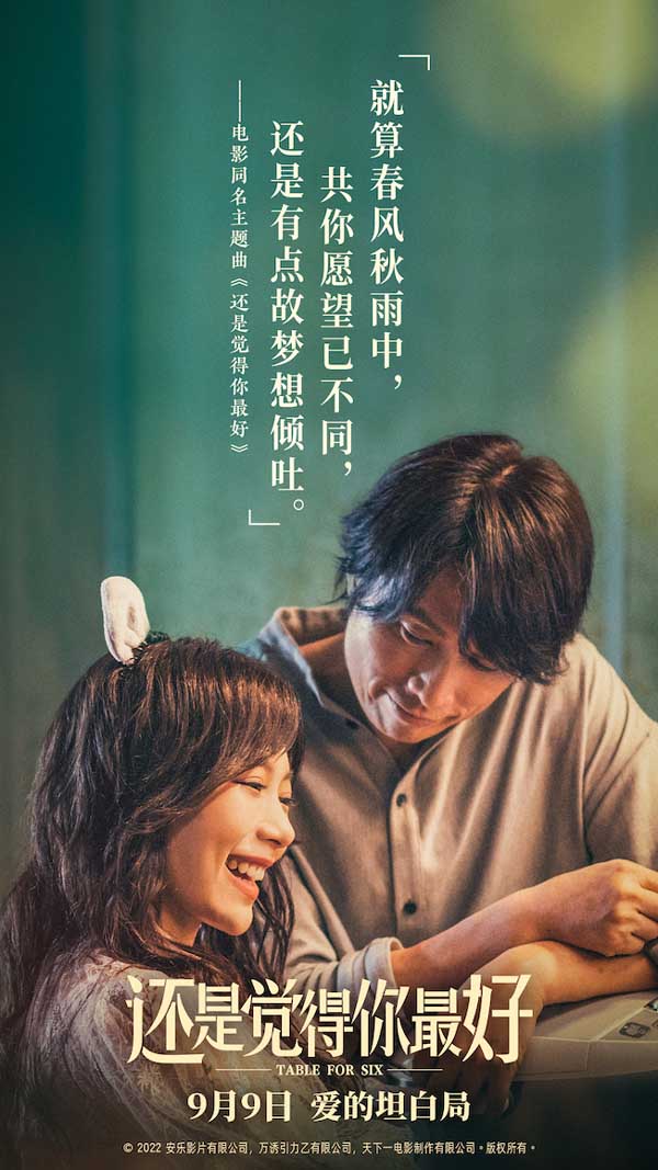 在MV曝光的全新画面中,六人不约而同唱起《还是觉得你最好》,“这漫长夜里,谁人是你所爱”是同一屋檐下的六位饮食男女在反问自己的内心,也是在问正在听歌的我们。初闻不知曲中意,再听已是曲中人,有多少人还是觉得曾经的TA最好呢?9月9日,带你听到这首歌就会想起的人去影院看《还是觉得你最好》吧。