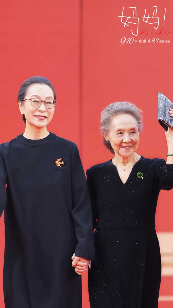 日前,电影《妈妈!》正式入围第十二届北影节主竞赛单元"天坛奖"。开幕式红毯上,导演杨荔钠、监制尹露和领衔主演吴彦姝、奚美娟集结亮相。吴彦姝身穿一袭中式旗袍,尽显岁月的温柔优雅;奚美娟则衣着黑色素雅裙装,眼神中透露着温暖坚定。两人牵手为伴、彼此搀扶,戏内外均流露出亲密无间的爱意。两位演员始终如一的敬业态度,绽放出女性演员独有的光芒与魅力。